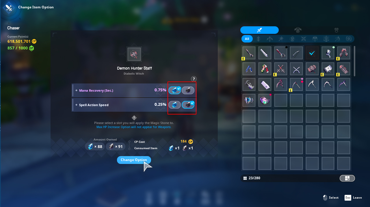 - La fonction échange de stats d’objet a été déplacée au “Livre de la connaissance”