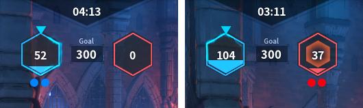 L’adversaire peut prendre les cristaux qui ont été lâchés, mais votre allié peut également les récupérer.Lorsqu’une équipe atteint le nombre de points requis pour gagner, un compte à rebours commence jusqu’à la victoire de l’équipe.