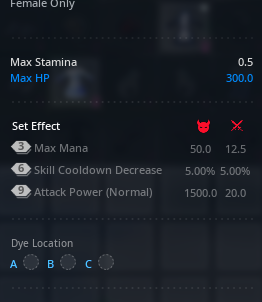 - Vous pouvez vérifier l’effet du set en regardant l’info-bulle des costumes qui ont des effets de set.