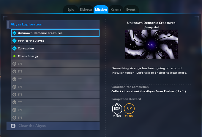 - Abysses est un donjon spécial qui s’ouvre lorsque votre personnage atteint le Nv.15 et ne peut être accédé que si vous avez un ticket d’entrée. Les monstres dans les abysses sont puissants, vous ne pourrez donc pas y entrer seul. Vous devez y entrer avec un groupe de 3 joueurs ou passer par un matchmaking pour rejoindre 2 autres joueurs.