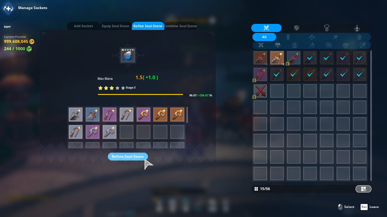 - Pierre d’âme : Peut être ajouté sur une châsse de votre équipement augmentera les statistiques basées sur le raffinement de votre pierre d’âme. Elle peut également être extraite et rattachée à un nouvel équipement que vous avez obtenu.