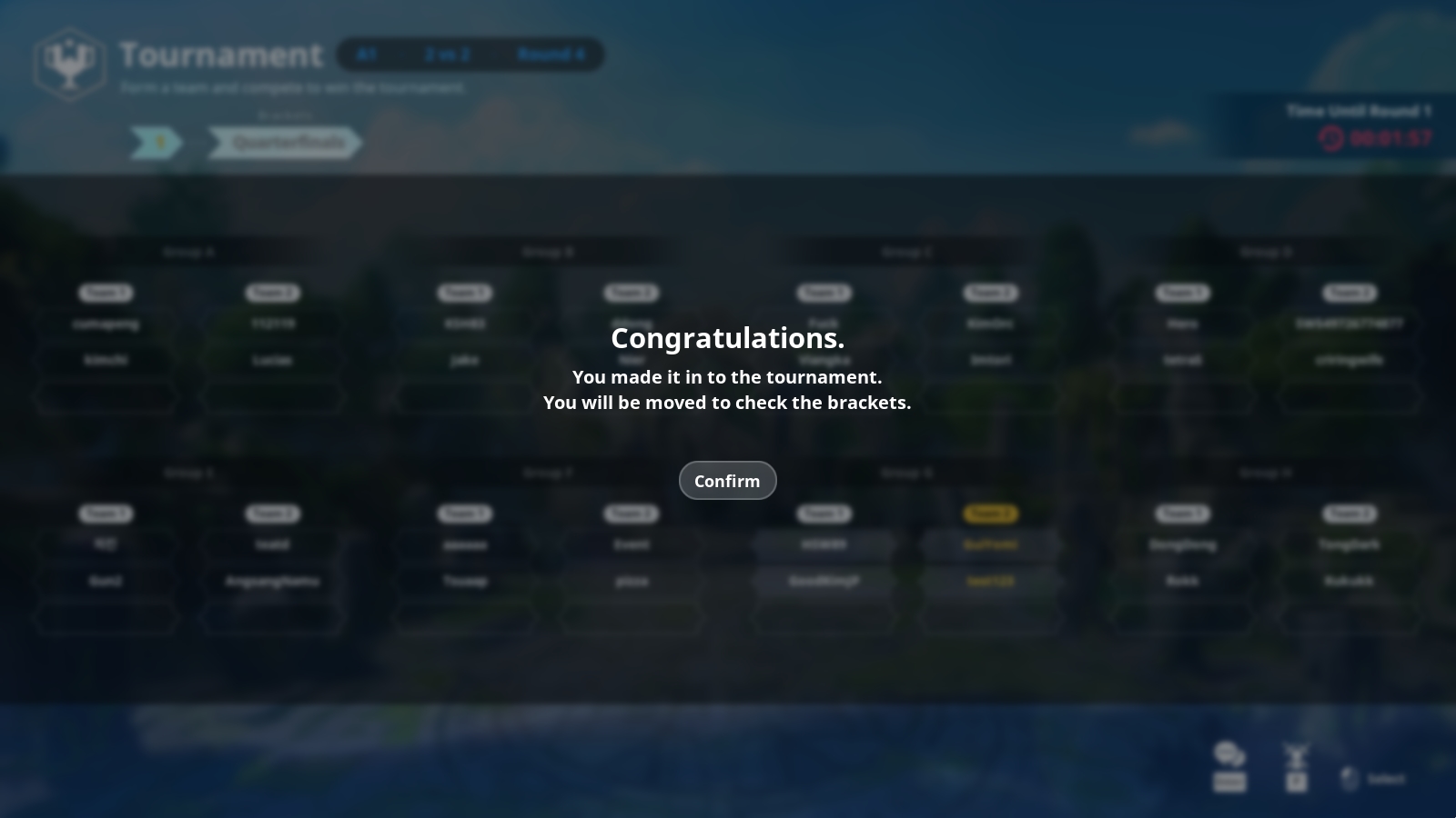 À l’issue de la période d’inscription, vous serez invité à confirmer si vous participerez au tournoi. Appuyez sur Participer si vous êtes sûr.