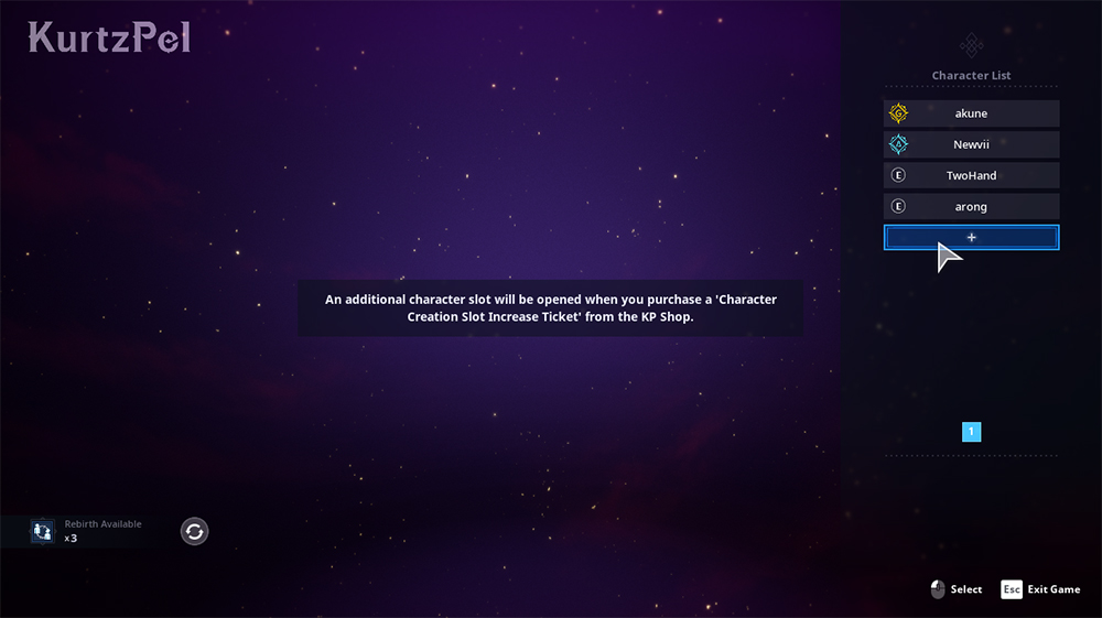 - Le rang du personnage sera affiché dans l’écran de sélection de personnage