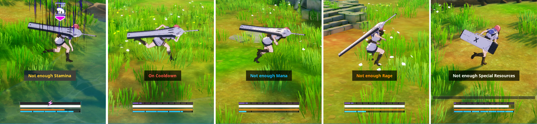 - Lorsque vous ne pouvez pas exécuter certaines actions pendant le combat, une info-bulle sera affichée sur la raison en question