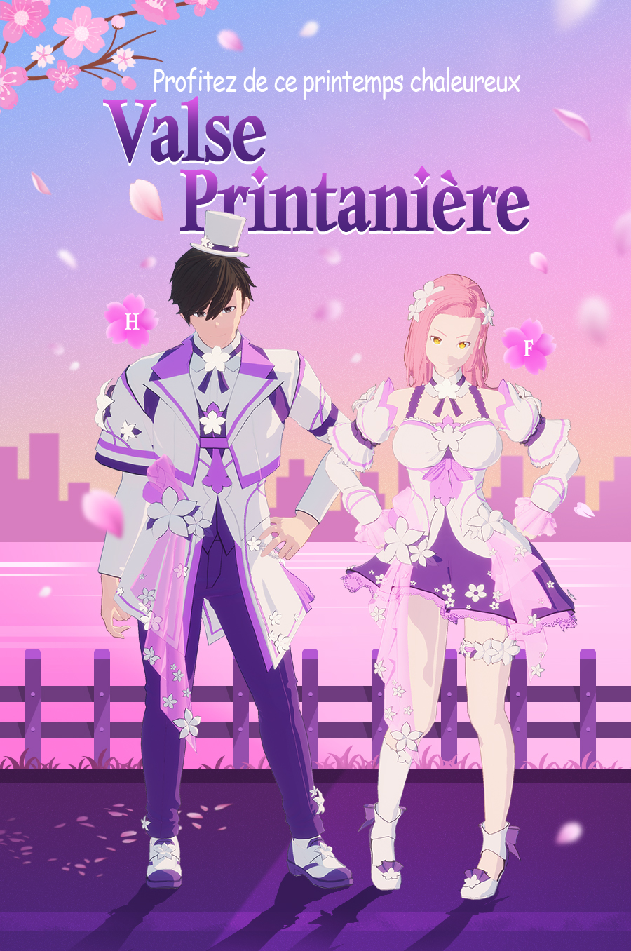 | Robe de valse printanière (Femme) | F | Haut + Bas | 1200 KP | (Mer) 15/03/2023 après maintenance ~ (Sam) 25/04/2023 23h59 (UTC +0) |