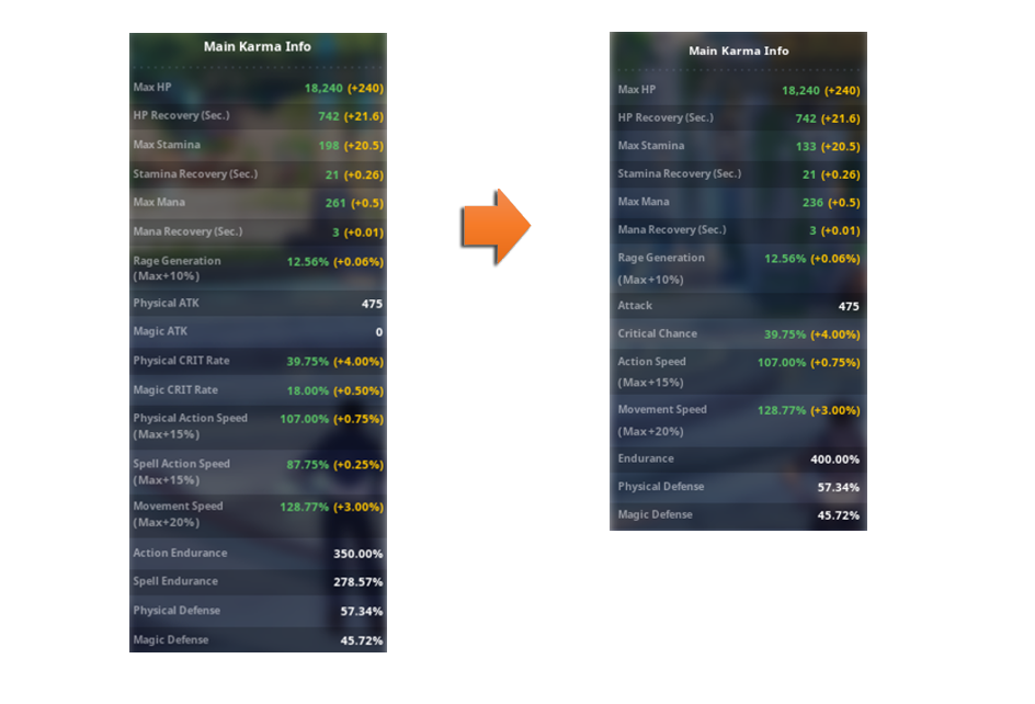 Dorénavant, les karmas ayant les mêmes rôles auront la même endurance.